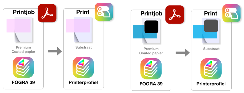 - Design/prepress levert printjobs aan op basis van het FOGRA 39/51 – kleurprofiel.